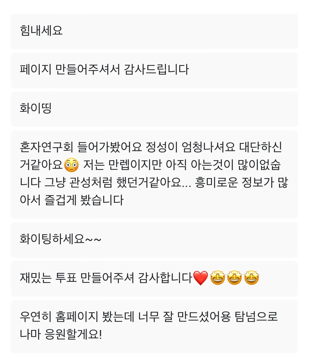 응원메세지 보내주신 분들 모두 감사해요.. 메세지는늘잘읽고있습니다